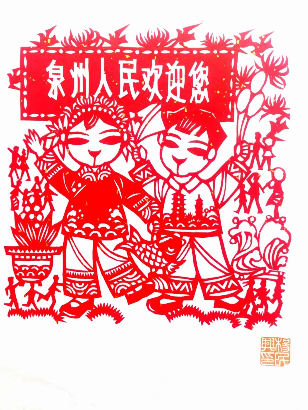 剪纸,已有1500年的历史,新疆吐鲁番的团花剪纸目前是确定最早的发源地。泉州刻纸在宋元已经达到巅峰,通常表达在花灯的装饰等民间习俗。我剪刻纸选择以闽南出转入石古厝角为主体,反映出当地的文化特色和泉州的多元性。南方剪纸和北方剪纸的区别是北粗南细,泉州的刻纸独特,要精细柔软精雕细刻达到唯美。