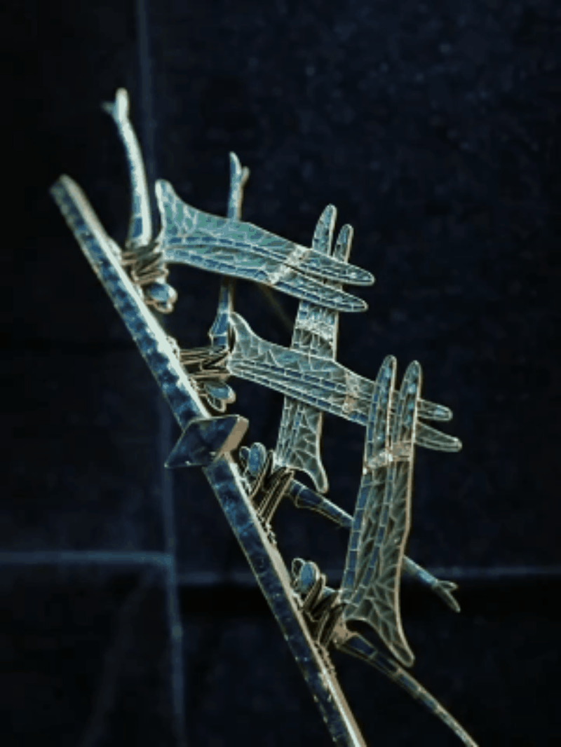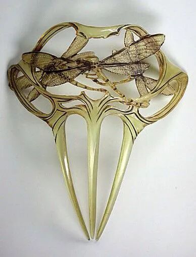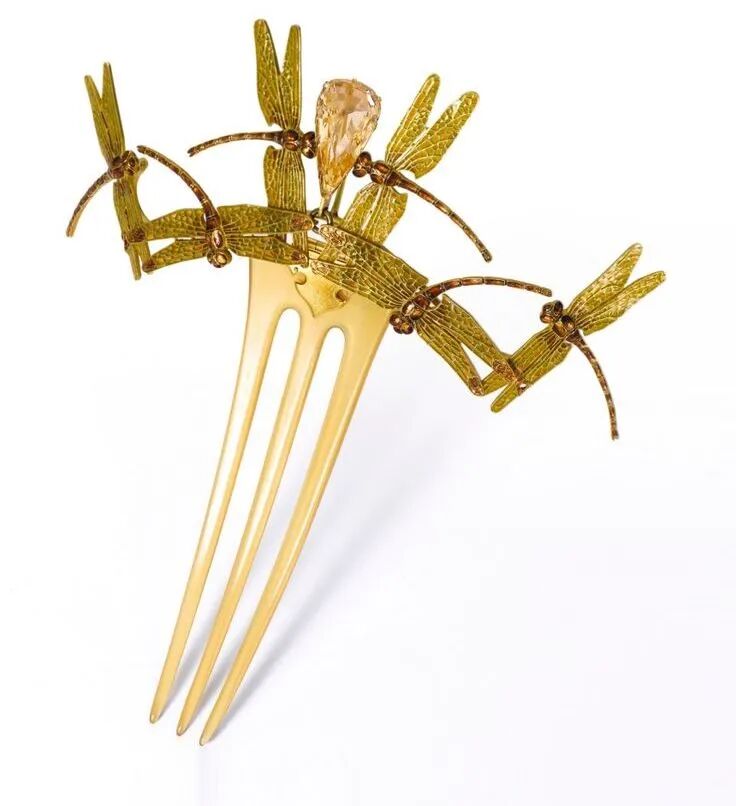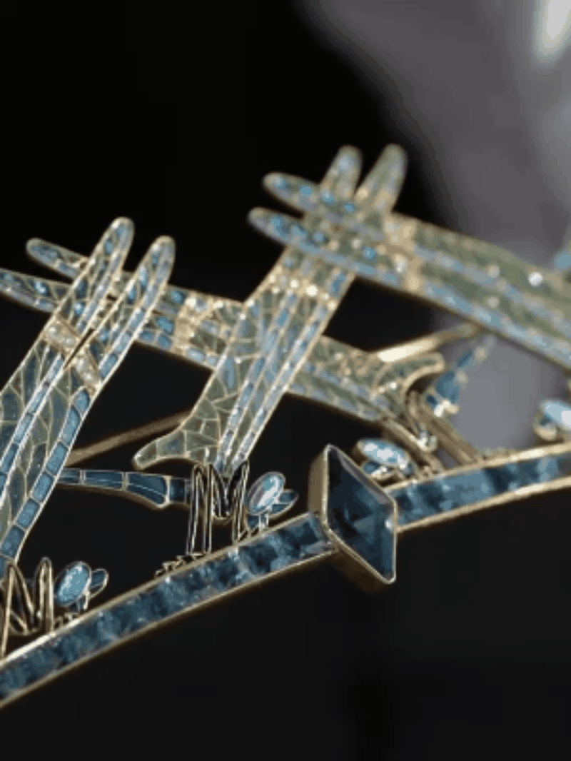 蜻蜓形制的发梳犹如还原了自然界的枝干花丛,栩栩如生