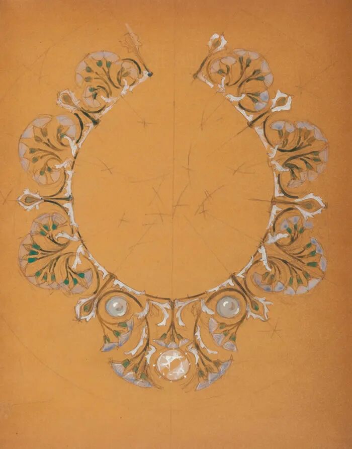 上:莱俪为莎拉所设计定制的舞台珠宝头饰草图