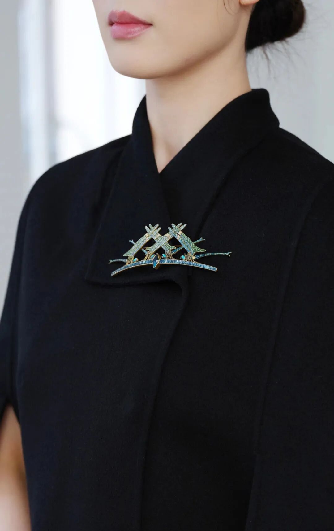而蜻蜓本身优雅舒张的翅膀、长长的后肢和坚固的身体,赋予了它能够完美镶嵌并展示宝石的珍贵特性。其翅膀的自然纹理和半透明质感,则非常适合空窗珐琅技法的演绎。
