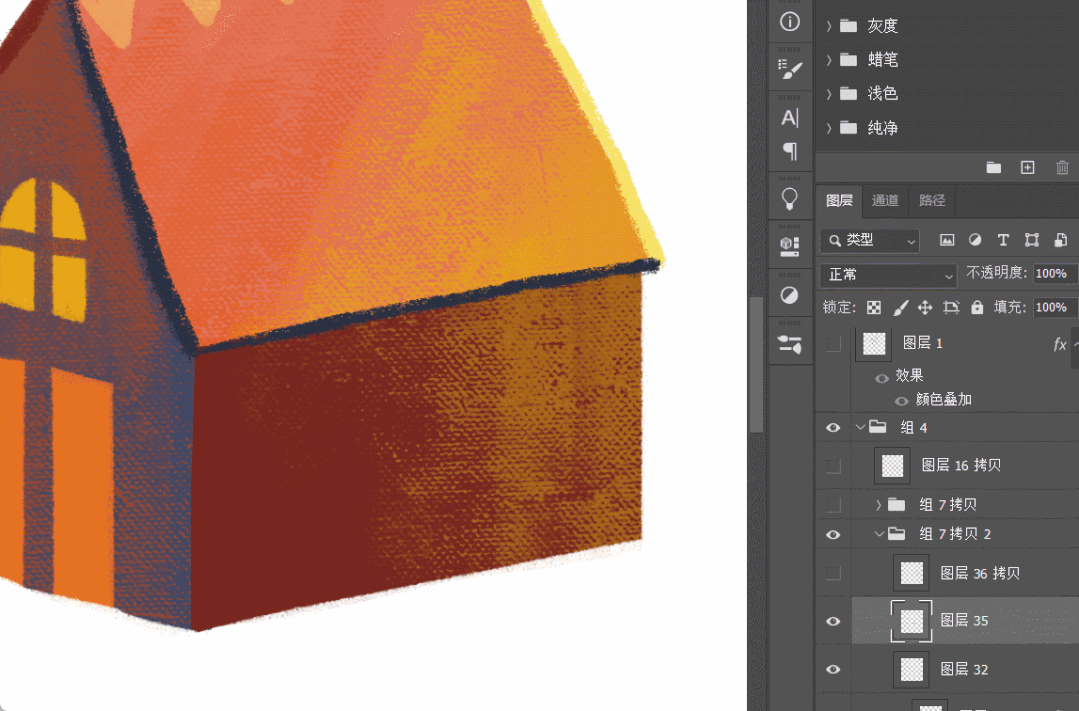 1.【村口粉彩铺色1】:用于增加质感,两种颜色叠加使用时效果更好