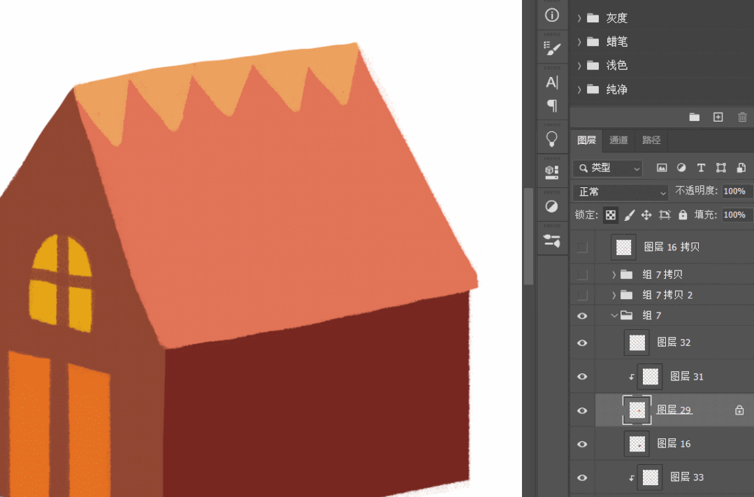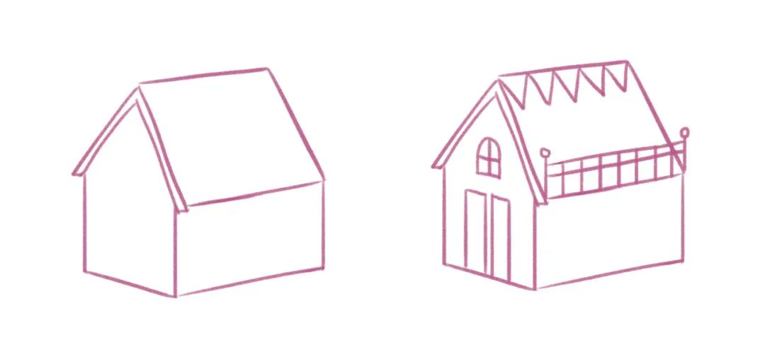3. 最后加上装饰,就很快画好啦~其他房子刻画同理。