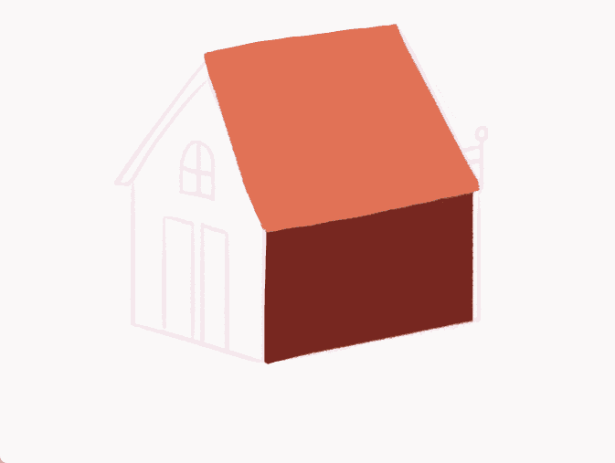 3. 绘制细节:接下来我们调整一下房子的角度,并绘制装饰,房子就绘制完成啦~其他的房子绘制同理。