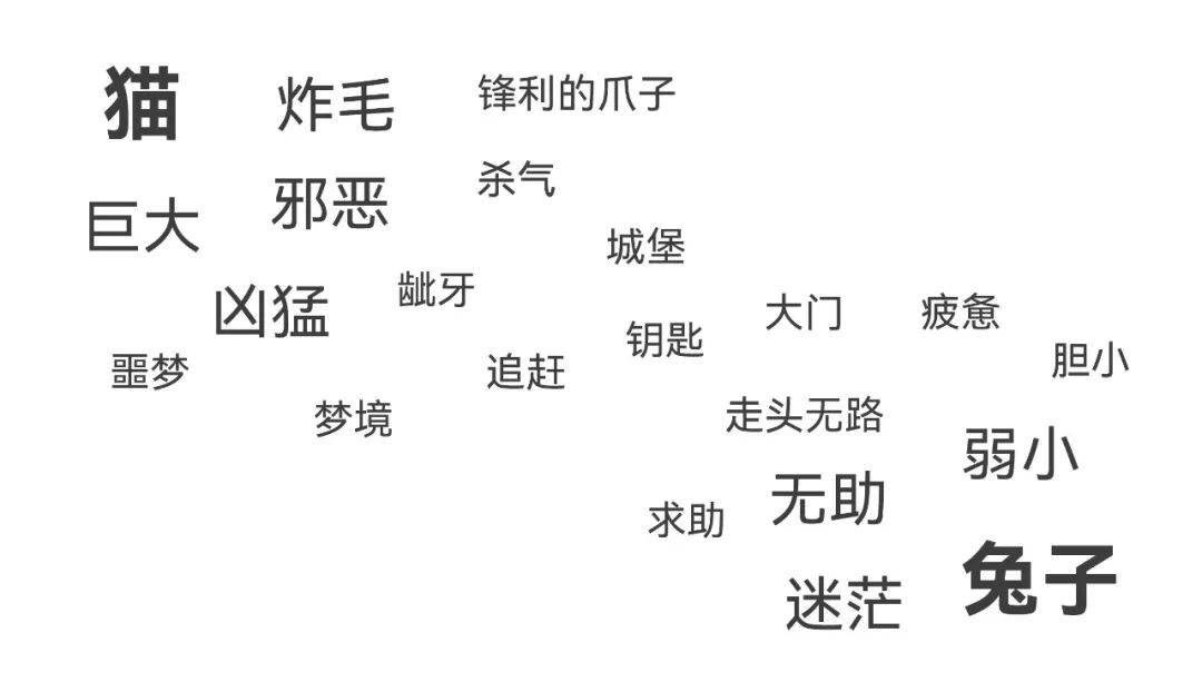 这里我将主角设定为猫和兔子,主角选定后就可以展开头脑风暴啦,从主角中先联想最接近的关键词,如下图。