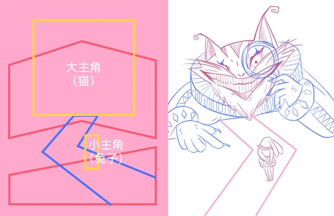 1. 主角和背景先以互补色呈现,绘制小色稿