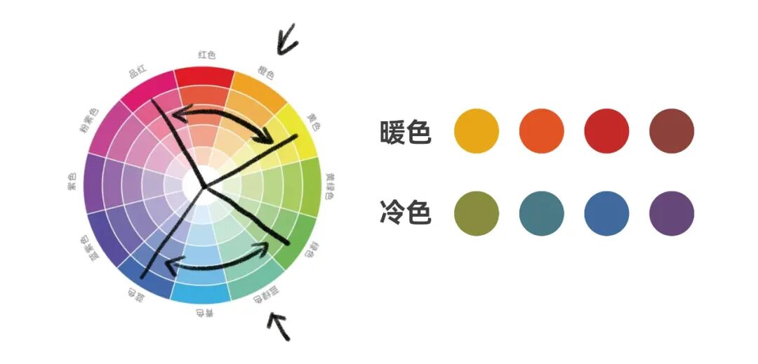 TIPS:选色时不要把色环上,所有的颜色都放进画面里,在选定的冷色和暖色的基础上,选择他的邻近色丰富画面颜色。
