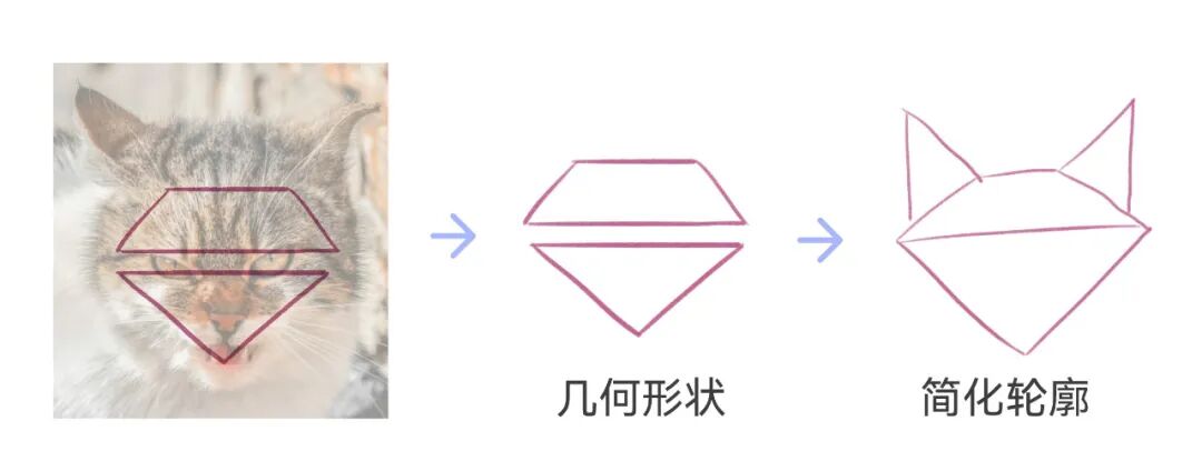 2. 提取轮廓:在参考的基础上,我们用几何形对猫咪进行轮廓的提取。