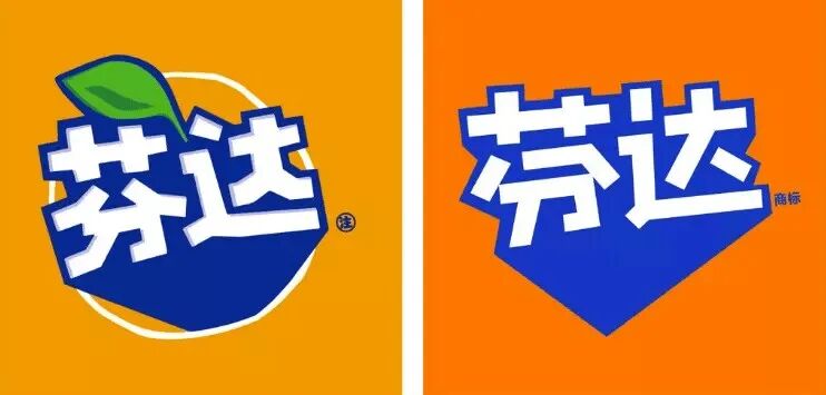 中英文字体全部删除内阴影,使图形变得扁平化,字体变得更加直达,看起来更加大气。同时还演变出一个F图形符号,使「芬达」的标志在任何环境和平台中可以更加灵活应用,如社交媒体头像、饮料瓶盖、应用程序图标等等。