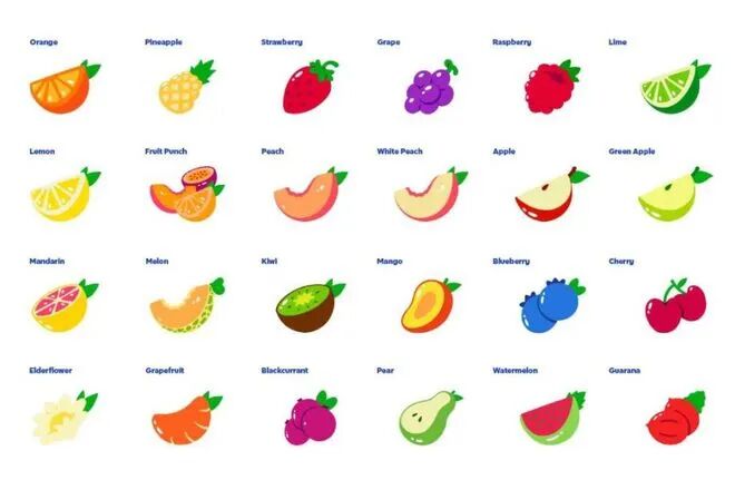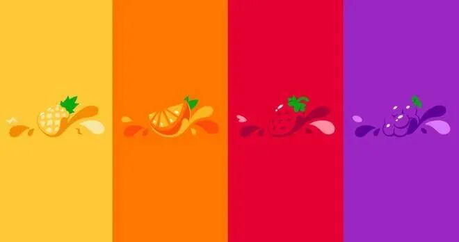 不同口味水果图标但配不同背景配色,让品牌符号变得更加生动。