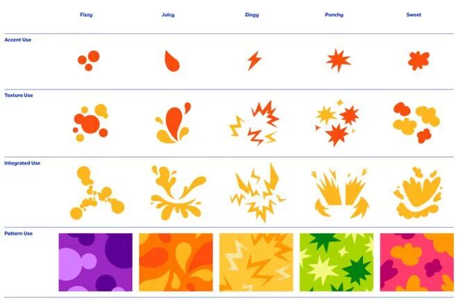 全新的品牌标志、字体、颜色只是品牌最为基础的组成部分。「芬达」还开发了一些列视觉辅助元素和插图,让消费者从视觉元素中感受到这个品牌对「尽情释放创意」的极致表达,让人随时随地都能进入一种放松和享乐。