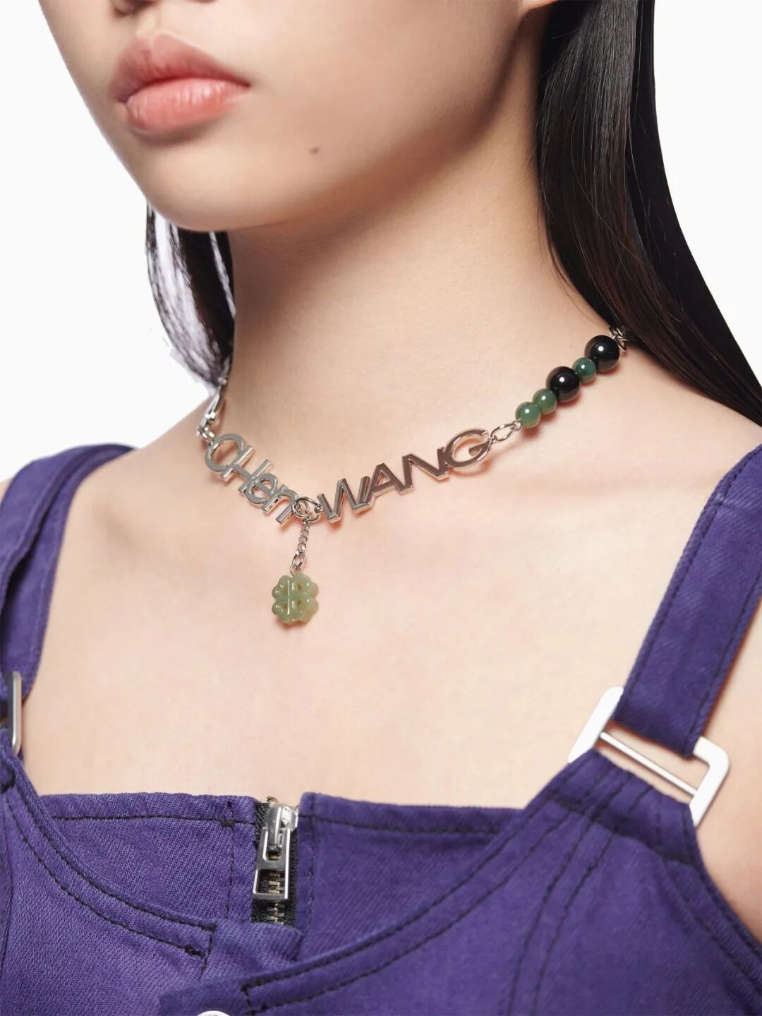 银色饰面铜&玉石徽标项链