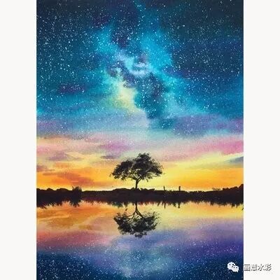 这个阶段就是刚刚接触水彩,这个阶段沉醉于艳丽的色彩,被水彩的水色淋漓的质感所打动,但是造型透视画面大关系还没有很好的把握,以画出绚美的画面为傲,所以我管这个阶段叫星空党。如下图这种:
