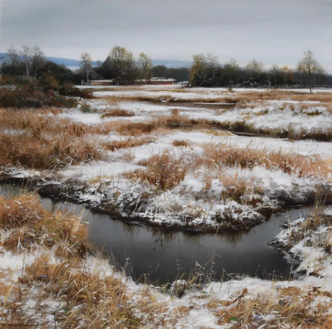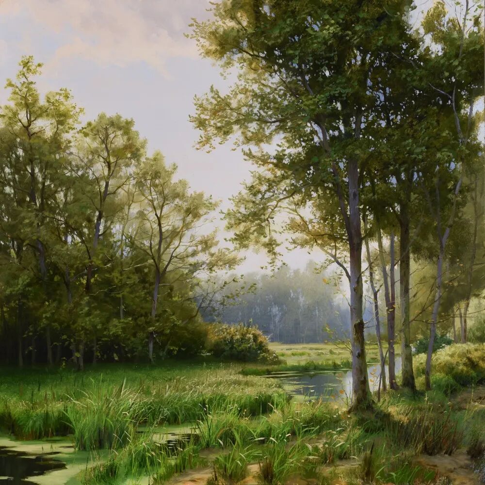 一开始观众会被奢华的色彩和近乎奇迹般的光线运用所迷惑,但仔细观察,我们会注意到涵洞、桩基、原木围栏或远处的烟囱。即使是作为他画作主题的农场,也让我们怀疑它们是可行的还是被遗弃的,因为没有人类生活的迹象,只有人类和机器留下的痕迹。