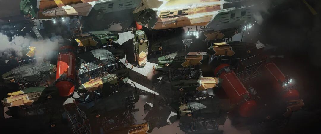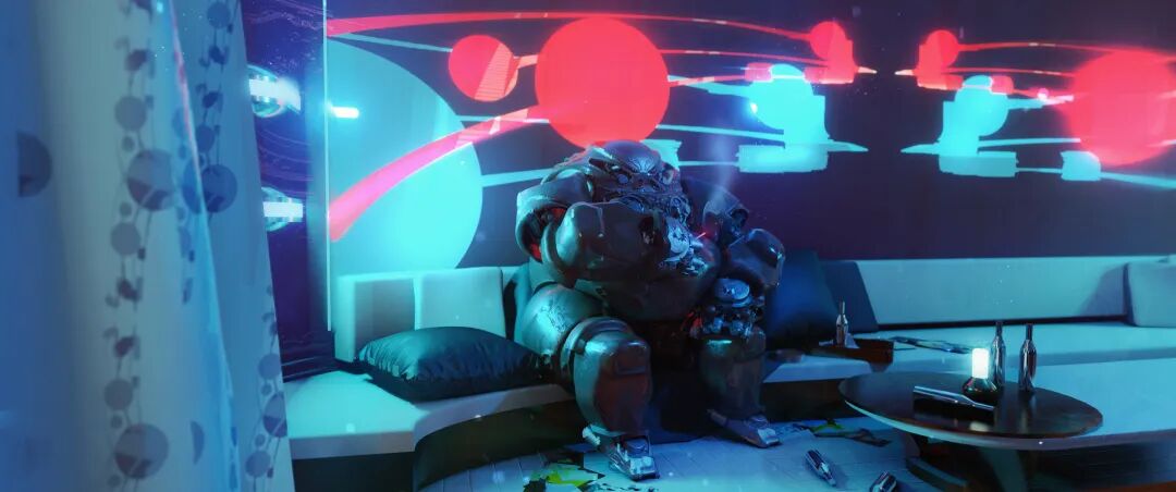 他的作品以大场景为主,审美相当高级,对不同材质质感的刻画非常到位,整体构图张力极强。