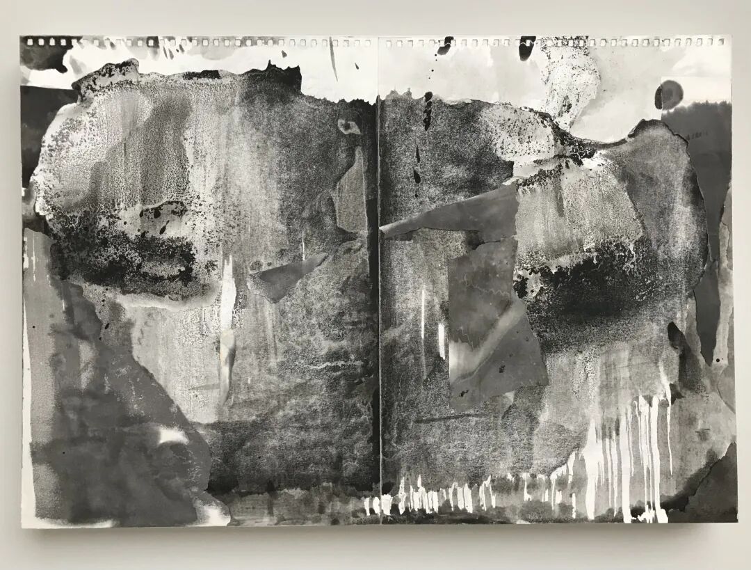 A:纸本作品以前画过,但这个系列的纸本作品我觉得并不是水墨画,虽然有墨,有丙烯,画在水彩纸上,也有宣纸,某些局部采用了拼贴,隔离期间材料太有限,我只能把画废的纸片收集起来,代替笔触再贴回画面中。
