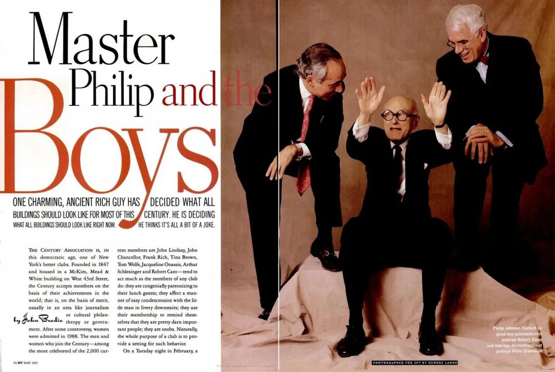 在这张照片中,我们可以看到彼得·艾森曼与菲利普·约翰逊一起,后者是艾森曼那一代人思想形成的部分文化背景下的推动者。菲利普·约翰逊参与了很多独特的项目,这些项目经常是重大的政治冲突焦点。