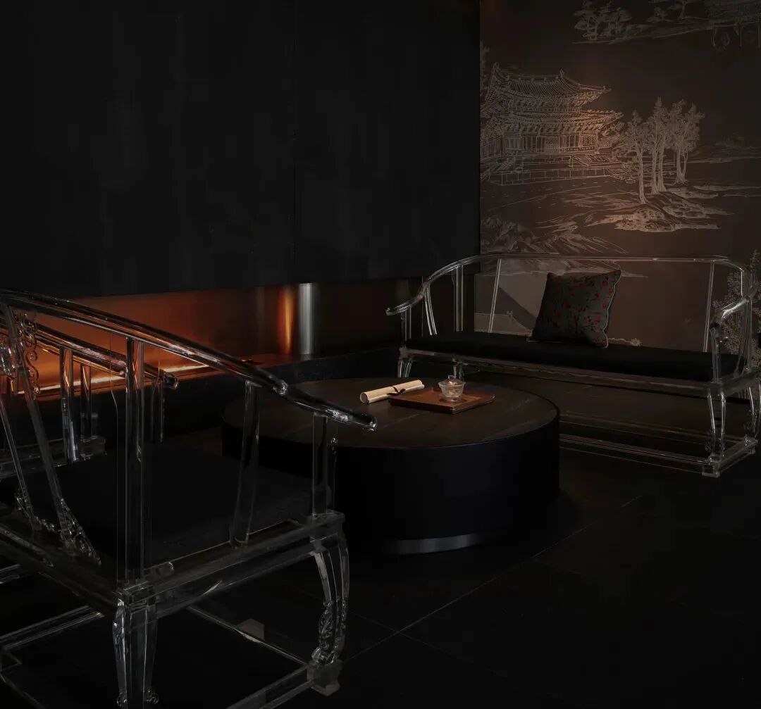 在现代设计中,家具承载的是更具精神性的实用美学。线条流畅舒展的长椅将空间的独特气质充分表达。实木基底替换为更加轻透时尚的亚克力材质,在对比中聆听传统与时代的不同语言。