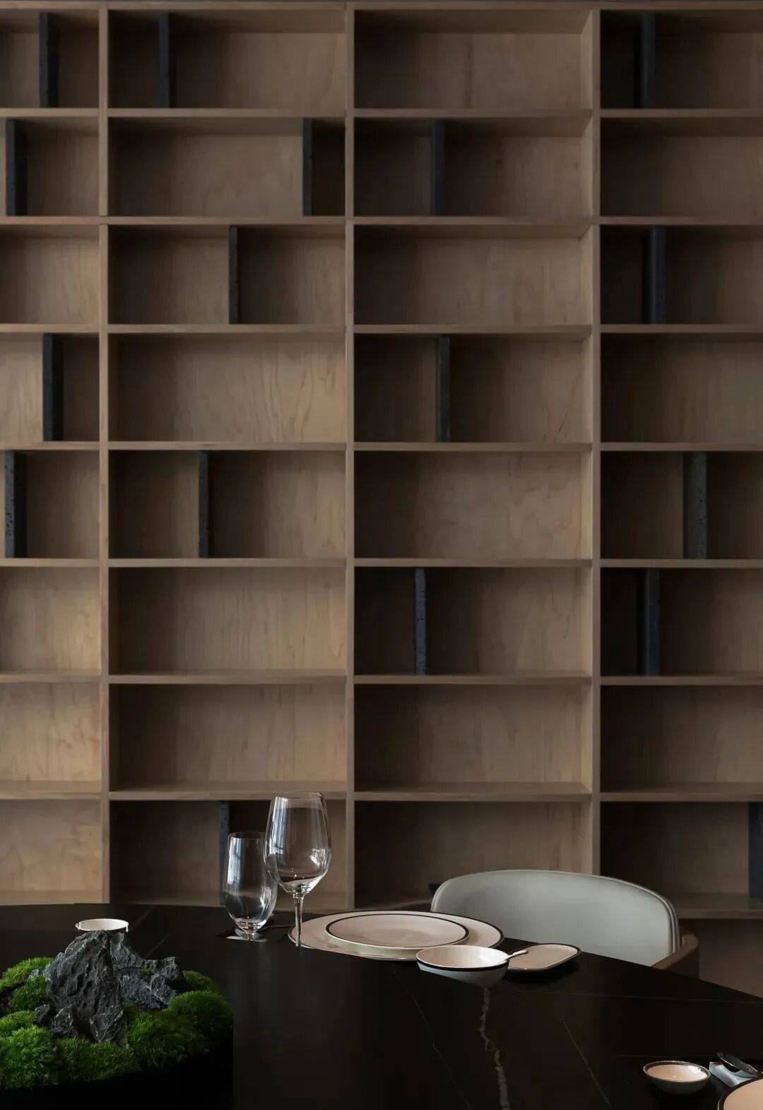 走进“御前”私宴,似有烟树婆娑的朦胧意境。空间在光感中构建成画面,生出一幅万象纷呈的山水长卷,并具有无尽联想的余象,通过拟态的设计手法,呈现出山石流动的生命力,以贴合当代餐饮空间的多元体验诉求。