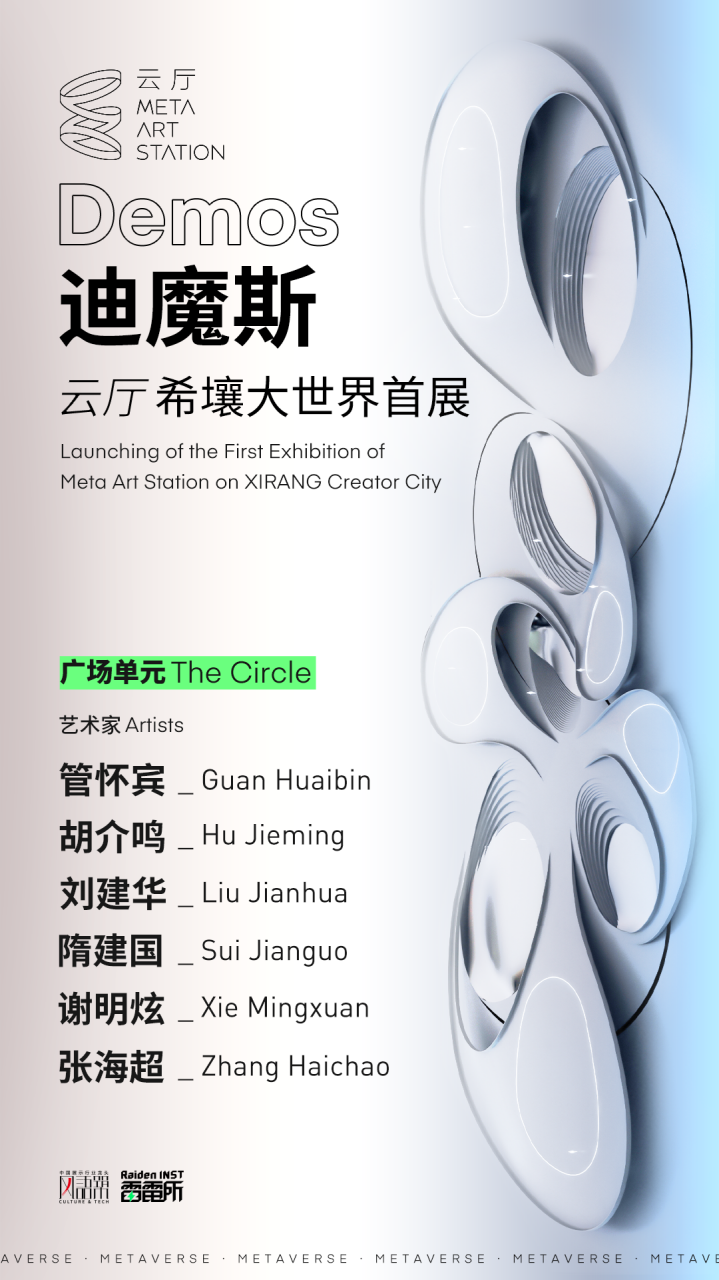 展览邀请6位知名艺术家(管怀宾、胡介鸣、刘建华、隋建国、谢明炫、张海超)将其标志性的艺术语言带入元宇宙世界,并结合云厅MAS的互动机制串联作品,展现其有别于物理世界的全新属性。