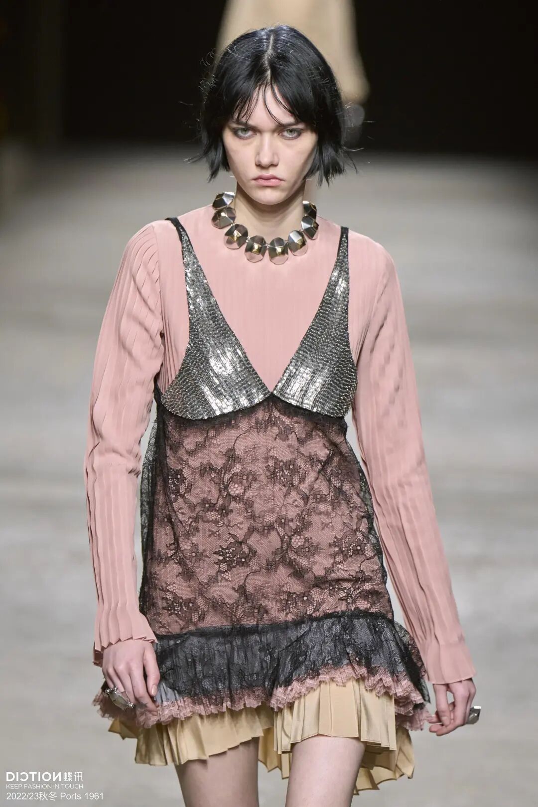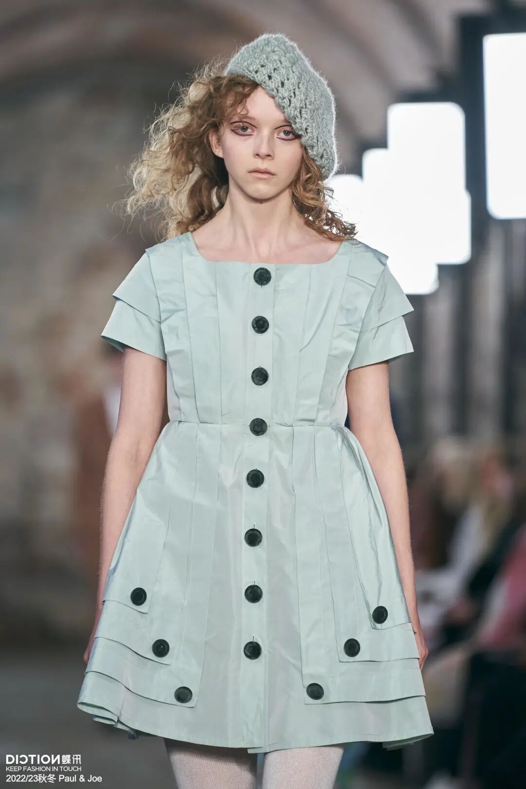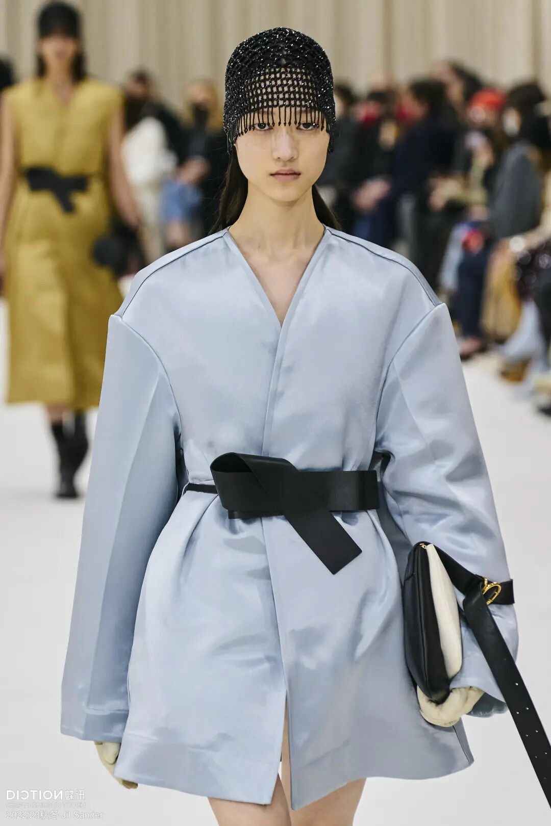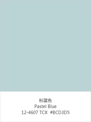 粉蓝色 (12-4607 TCX) 在本季秀场中得到多种演绎,在年轻化设计中占比更大,其灰调相对较重,甜美感被大大减少了,更加强调其清爽的特质,因此适合打造新式少女装束,盐系穿搭可作为主要系列推出。