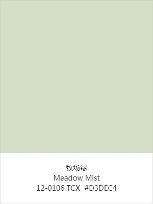 牧场绿 (12-0106 TCX) 清新得犹如春季山野拂面的风,在秋冬季穿着绝对可以一扫沉闷,即使只是小单品也有很好的点亮造型的效果。