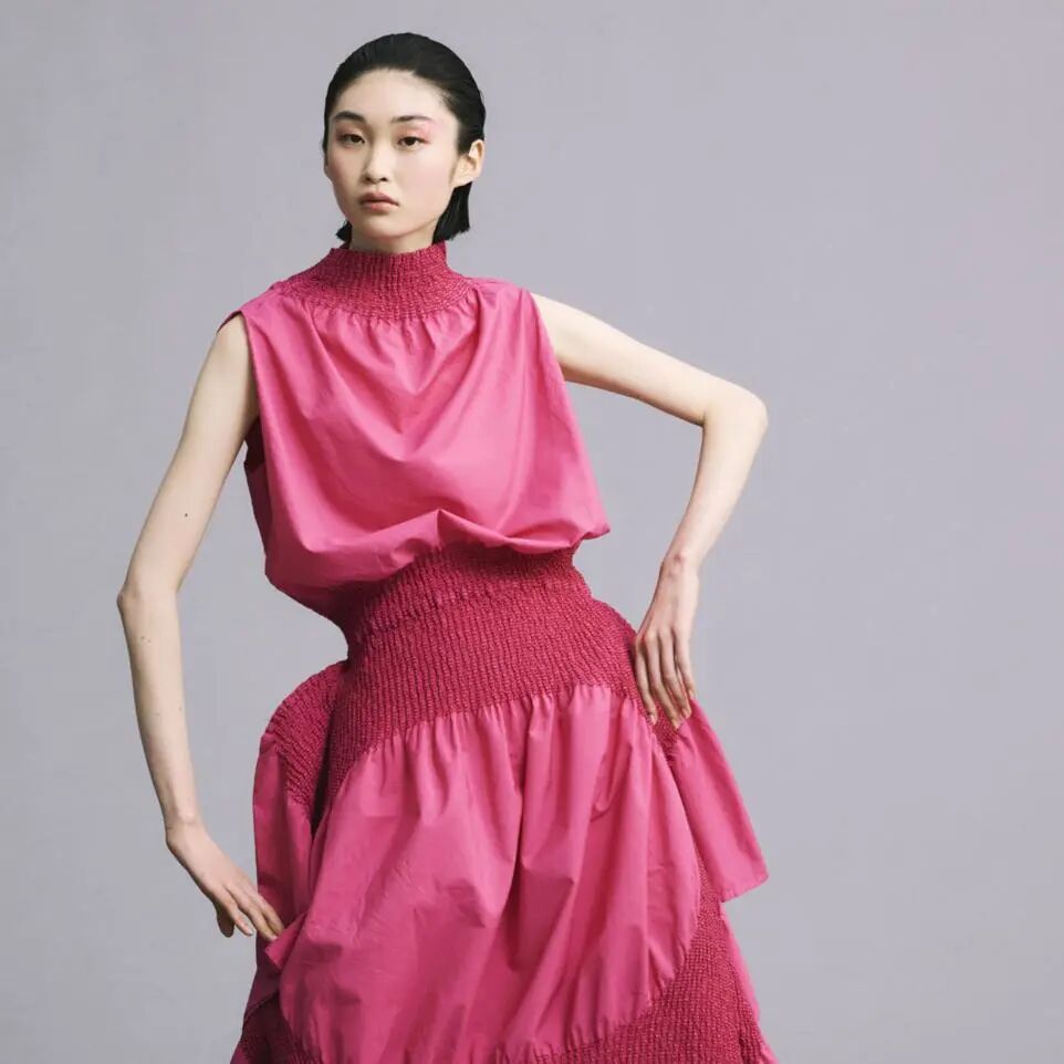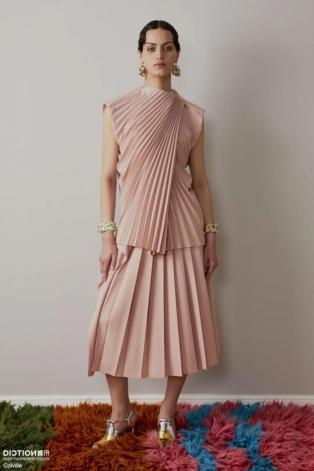婴儿粉对于女性具有特殊魔力,柔软和纯净是它所表现出的特质,想打造梦幻氛围的裙装或者奉行极简主义而不想走强势大女主风格的品牌可以考虑婴儿粉,相较于莫兰迪色调它更具有轻盈感。