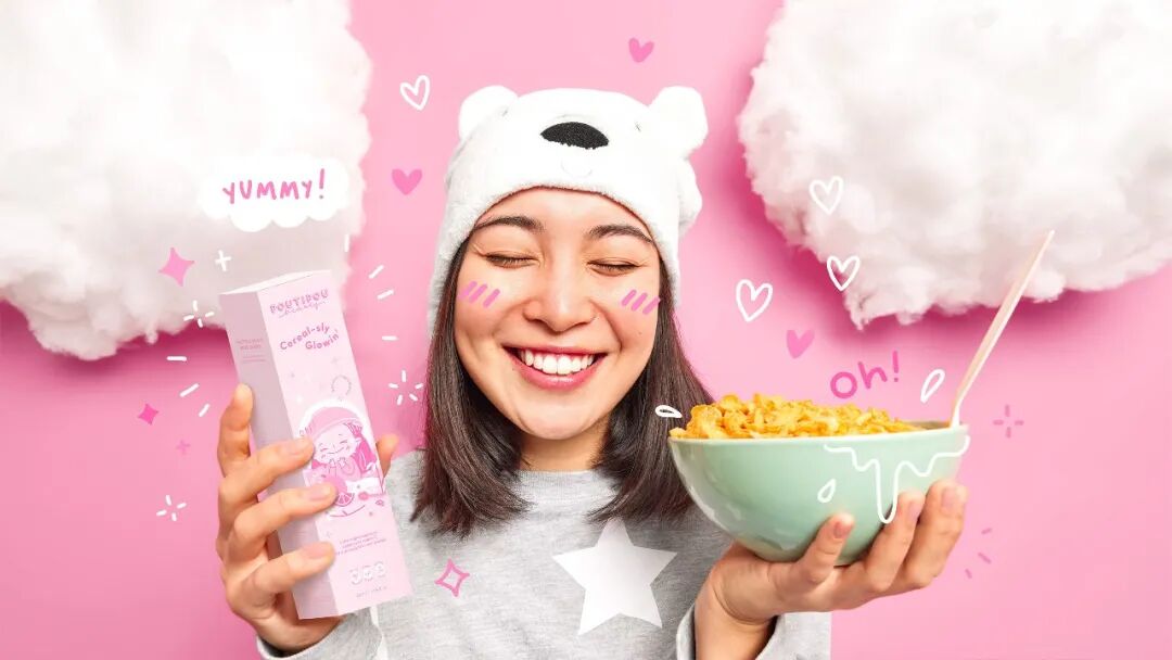 粉色系可爱的单色卡通场景搭配表情和动作,