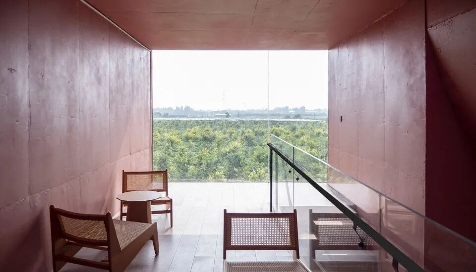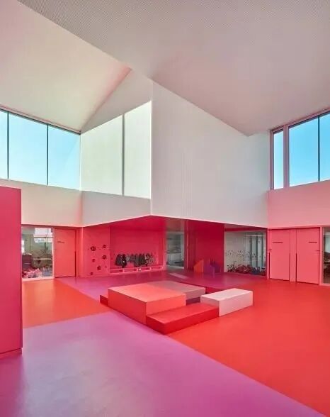 千变万化的自然光线和丰富的粉、红色系墙面让这个方形空间如同万花筒般多彩。哑光和光面的颜色在这里和谐共处,让空间越发丰满。