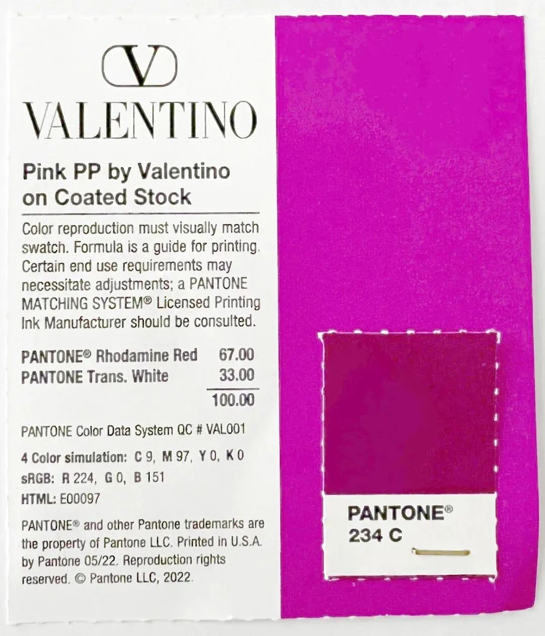 此次,Valentino携手Pantone Color Institute合作打造的专属粉色被命名为Pink PP。
