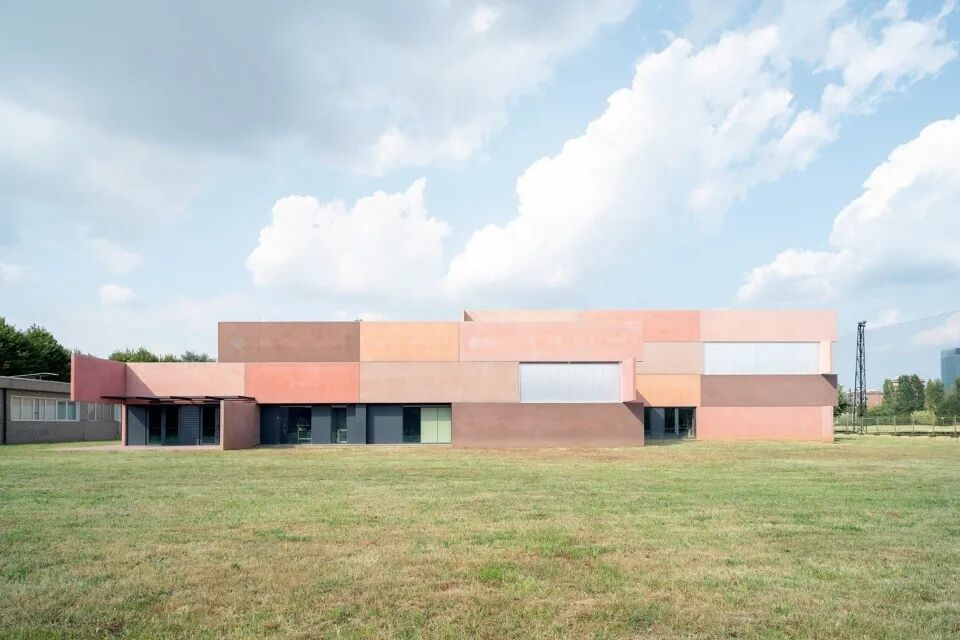 外立面采用了矩形错位的手法,用不同颜色装饰。避免了对典型仓库形象的重复。