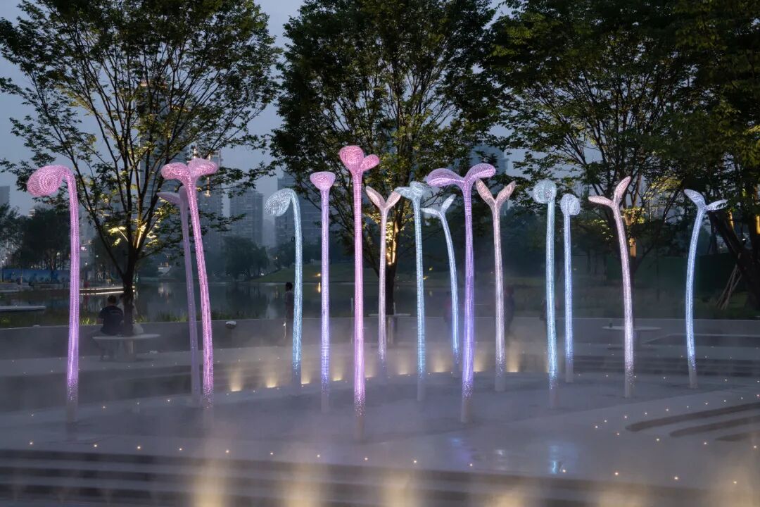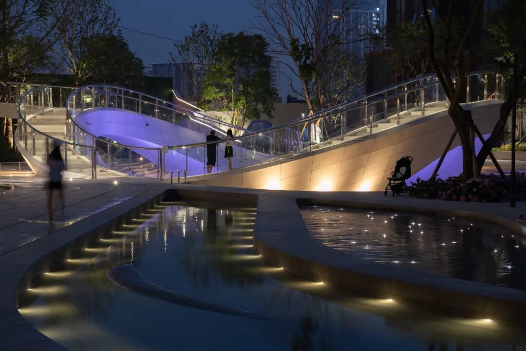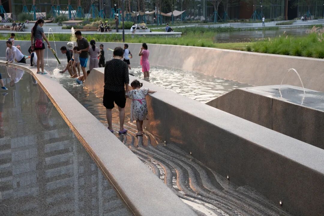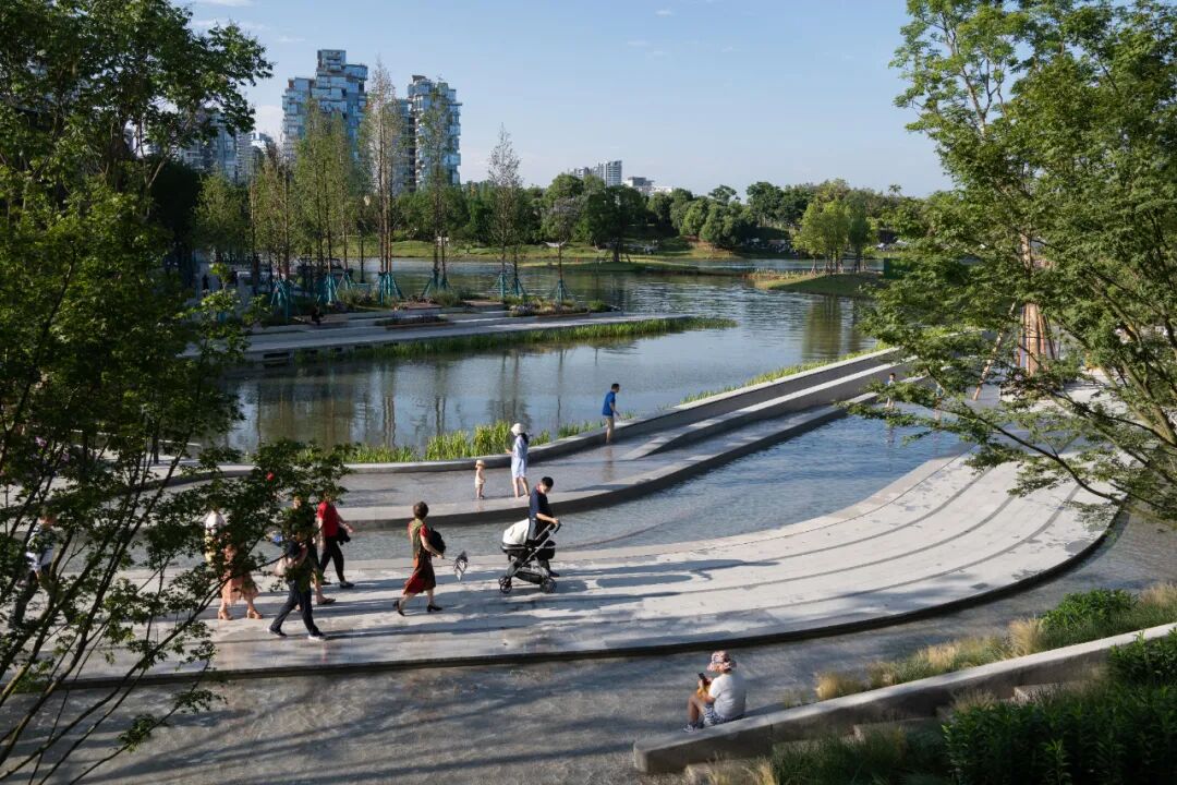 “Water Distributing Park”, located in the core area of Luxelakes Eco-city, is another exploration and practice of Lab D+H Shanghai in the organizational relationship between urban residential space and waterfront space after “Water Crossing Park”. In order to vitalize the gray valley of the city, we started from geographical position and cultural context in Chengdu, took hydrological characteristics of Sichuan as an orientation, interpreted the story of “Water to Chengdu” from weir ditch, valley, folding pool and island by natural simulation design techniques and then built four interactive water parks in Chengdu to constitute the four parts of “Water to Chengdu” (water distributing, water crossing, water falling and water embracing). Water Distributing Park connects with the main water body of Luxelakes and adjoins Luxelakes Middle Road leading directly to Tianfu Avenue to the east. Although Water Distributing Park was completed later than Water Crossing Park, it is the prelude and opening chapter of the whole waterline park. The design of Water Distributing Park was commenced at the end of 2016. It was finally completed after several revisions, repeated optimizations and tough construction in the epidemic situation.