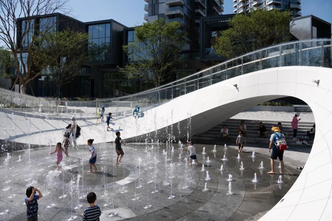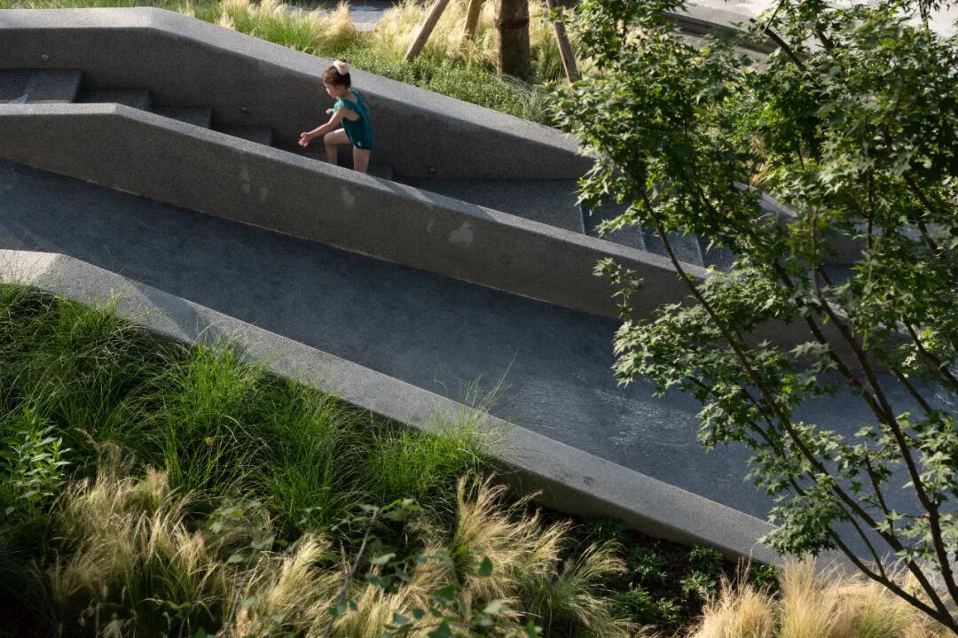 “分水公园”位于麓湖生态城内核心区域,是继“穿水公园”后,Lab D+H Shanghai在城市居住空间与滨水空间组织关系中的又一次探索与实践。为了唤醒城市灰色峡谷地带的生机与活力,我们从成都地脉和文脉出发,以四川水文特征为导向,将“水到成都”的故事通过自然模拟的设计手法从堰渠、峡谷、叠池与洲屿逐步演绎形成四个专属于成都的水互动公园,共同构成“水到成都”四部曲(分水,穿水,叠水,环水)。分水公园与麓湖主水体相连,紧邻的麓湖中路向东便可直通天府大道,它虽比穿水公园稍晚完工,却是整个水线公园的序曲和开章。分水公园的设计早在2016年底就开始启动,历经多稿修改和反复优化,以及疫情之下两年多的辛苦建设,如今终于得以呈现。