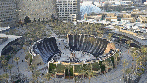 位于迪拜 Jubilee 公园内的《Surreal》,面积有半个足球场大小。站在高耸的艺术作品下方,飞流直下的瀑布即将吞没人,却又突然消失。