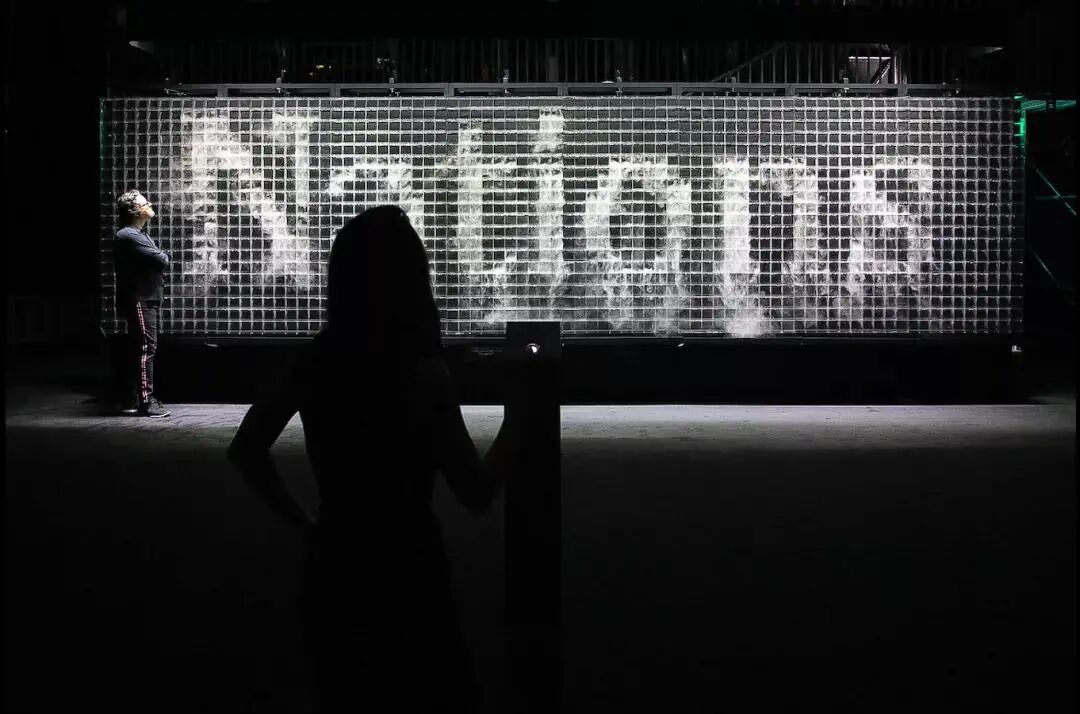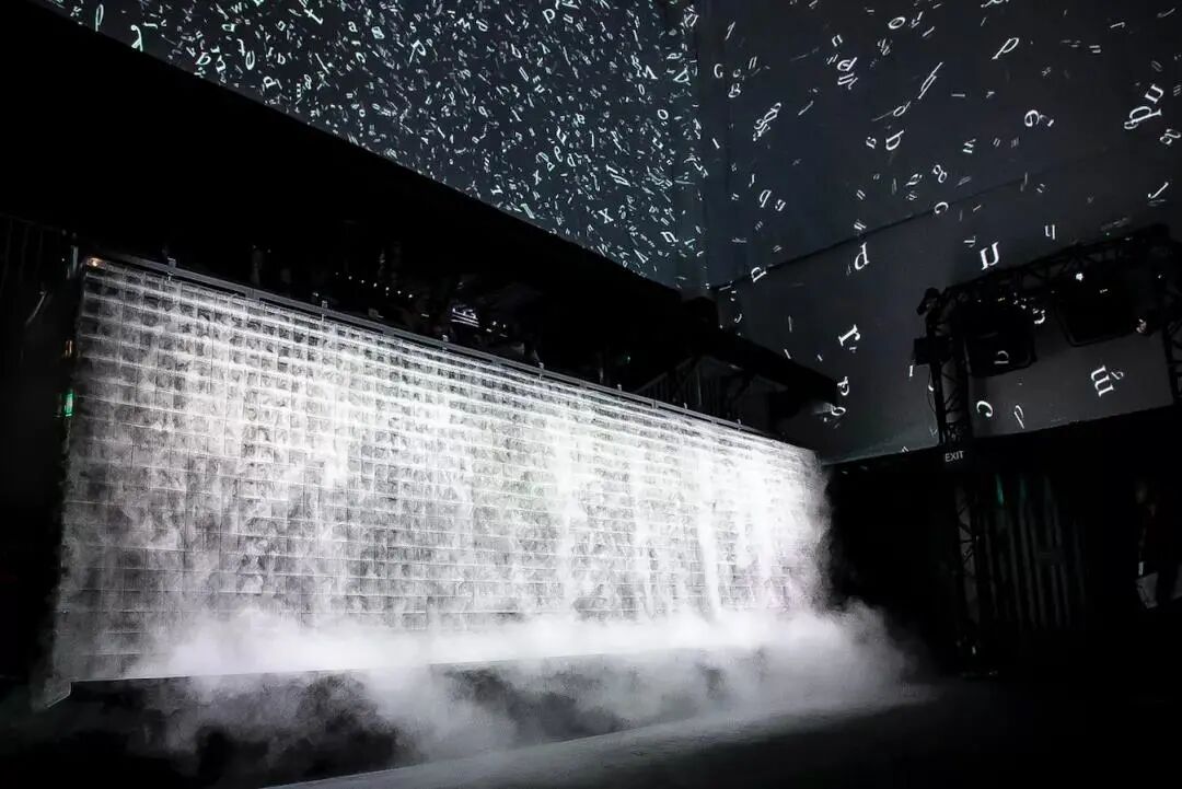 这些词句出现,消失,再出现……形成一个回味无穷的语言展示区。如果无人参与互动,该作品看起来就只是一片由水蒸汽组成的云端“瀑布”。
