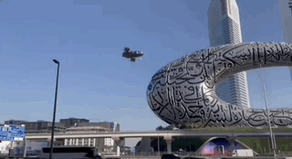 博物馆开放当天,一个看似航天器的飞行物悬停在场馆上方。