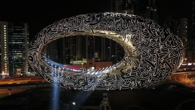 迪拜未来博物馆可谓内外兼修。不但外观夺人眼球,就连室内也是超现实的观展体验。