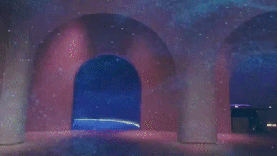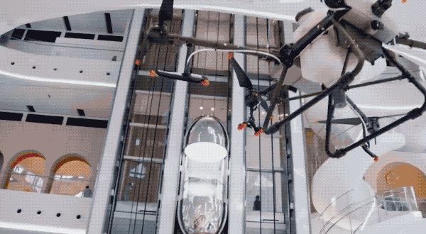 随后,博物馆机械又灵活地开放表面结构,飞行器穿梭而入、稳稳降落,就像《银翼杀手 2049》里的情节。