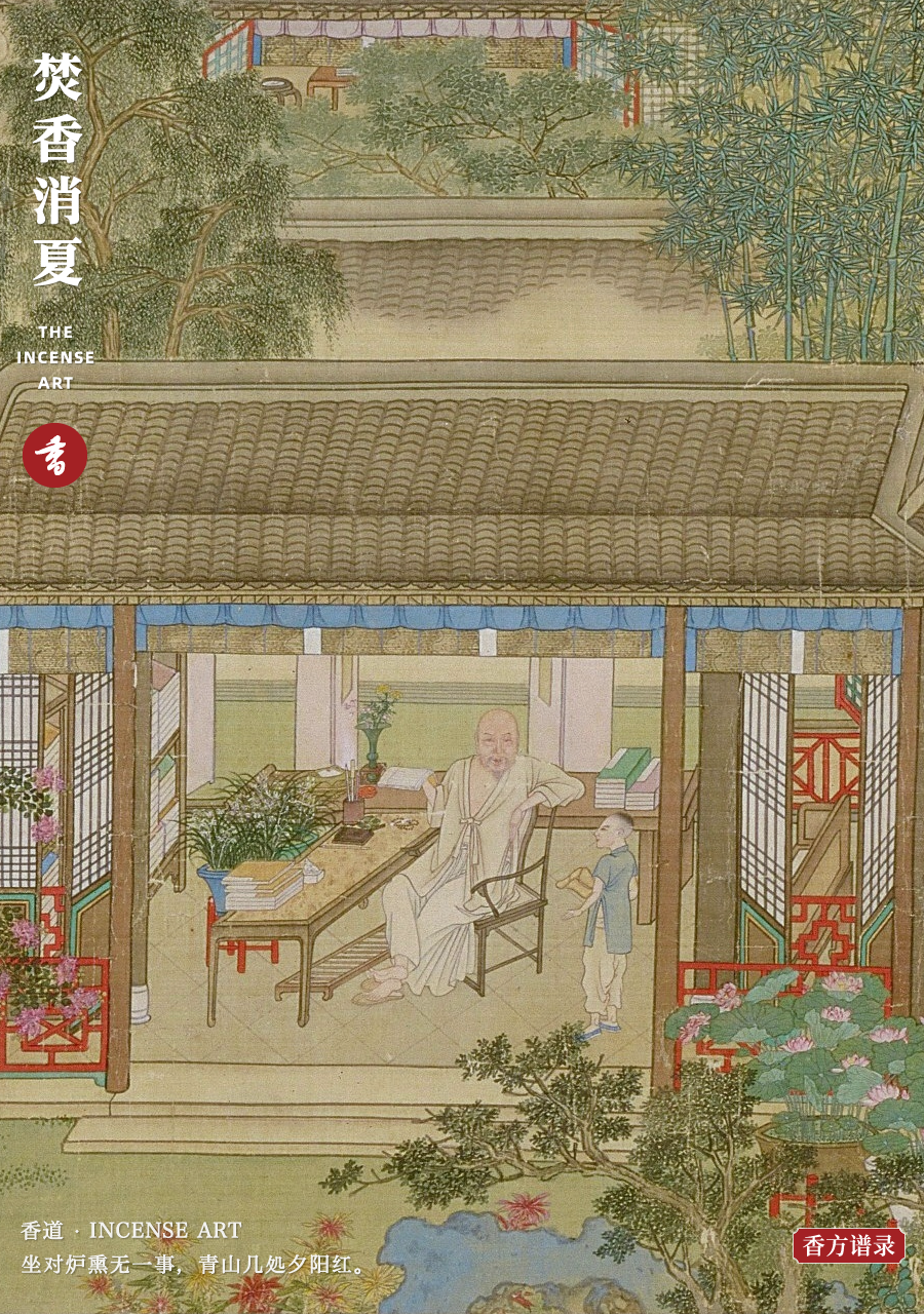 焚香,是宋人喜爱的消夏方式。潘良贵《夏日四绝》:“扫地焚香避湿蒸,睡馀茶熟碾声清。”周密《武林旧时》:“都人士女,骈集炷香,已而登舟泛湖,为避暑之游”。置身于清新沁凉的香气氛围中,有助心平气和,放松舒缓身心,尽消暑烦。