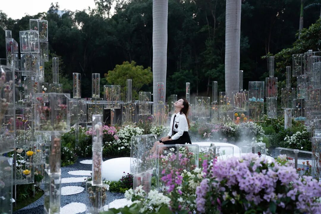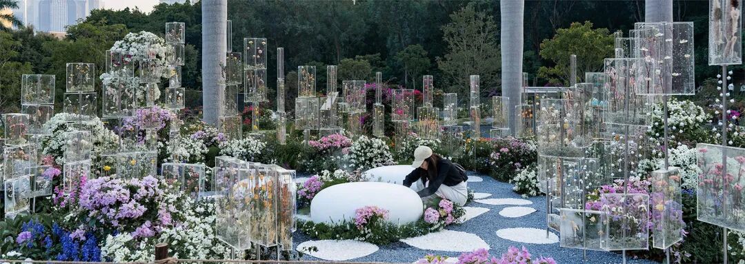 设计怀着“冰封花朵,邂逅永恒”的美好愿景和深圳经济特区成立41年的祝福,选择深圳最具代表性的41种花“冰封”在透明的互动装置中,互动科普。用白色、淡粉色的勒杜鹃主花和冷色调的配花共同营造冰天雪地的意境和沁心宁静的氛围,以“冰裂”的平面形态串联花境,形成一个“0℃花博馆”,给常夏无冬的深圳带来别样的“0℃”花园体验。