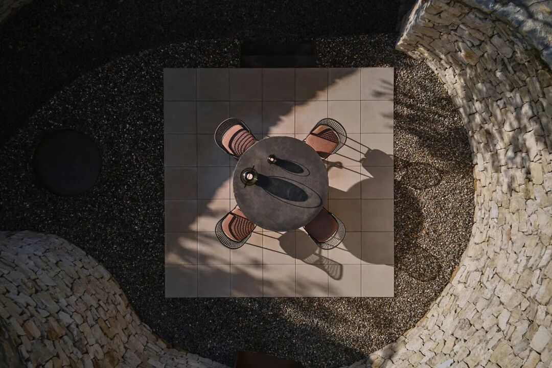 Fibonacci庭院面对新的石墙,并被间接的照明所包围,此外还有两个不同的功能层,较低的一层用于必要的连接,较高的一层作为品尝区,以一张圆桌作为空间的中心,主要用于聚会和社交。