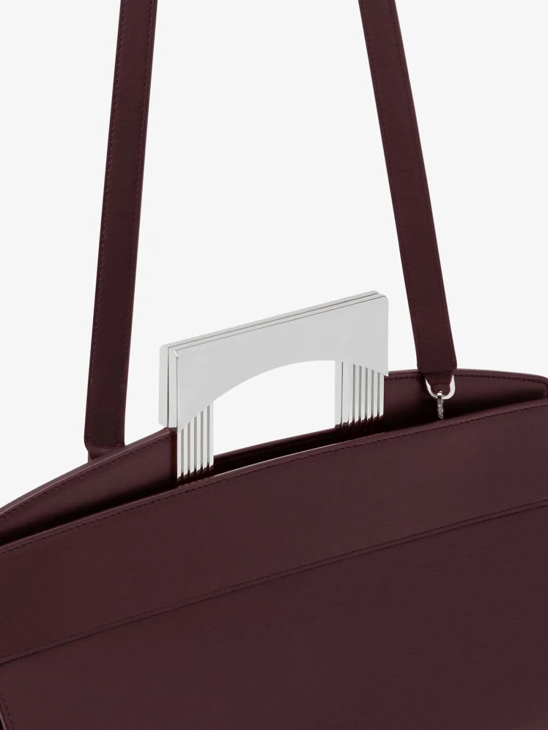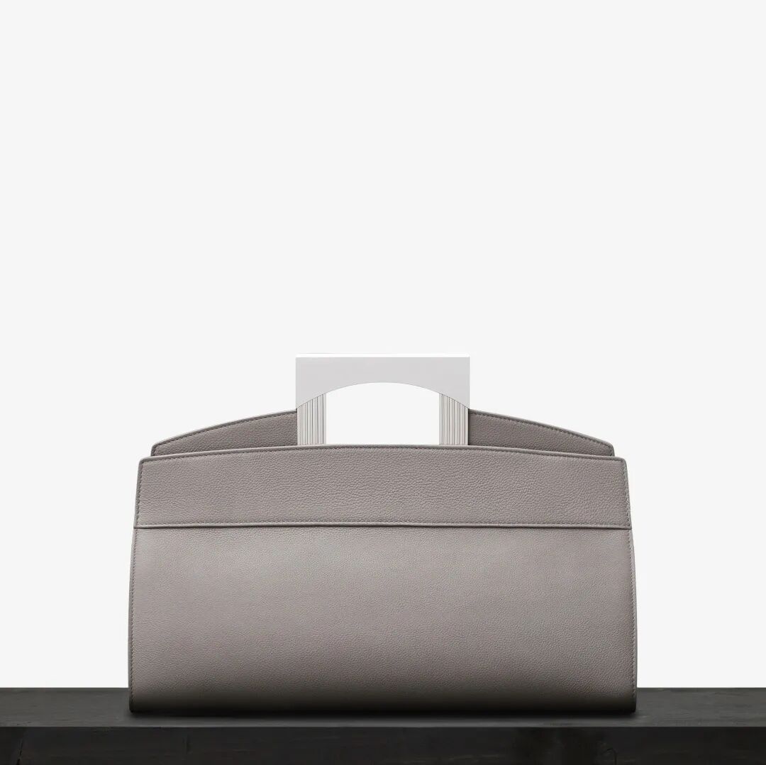 其托特包和小牛皮手拿包的银色及浅金色配件的灵感来自梳子,让现代感的廓形多了装饰艺术的风格。