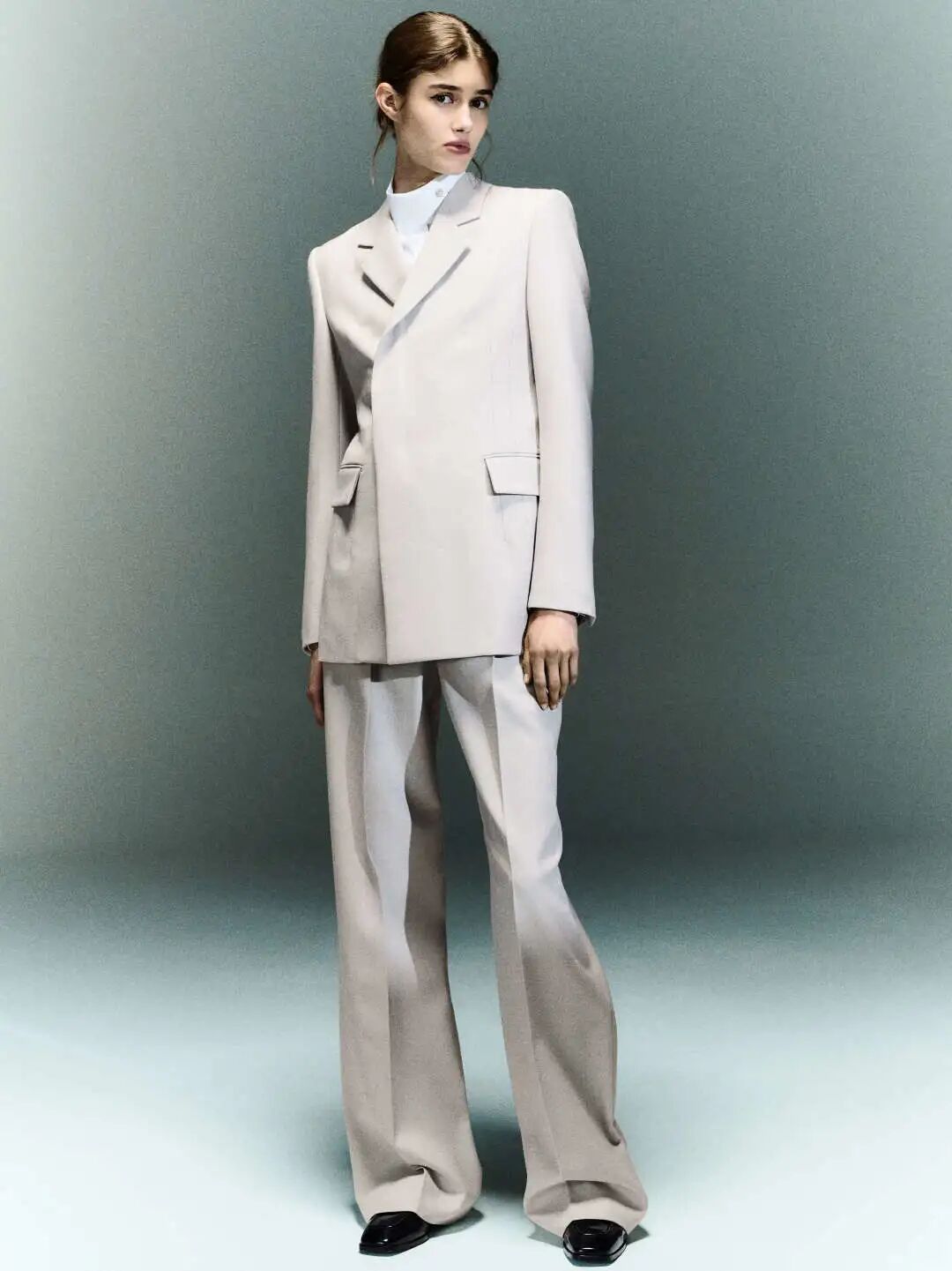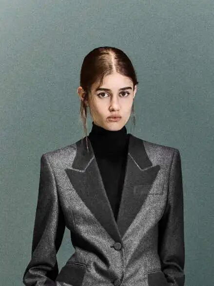 上面这件羊毛混纺的灰褐色西装,也出现在意大利版《VOGUE》的十月刊大片中。