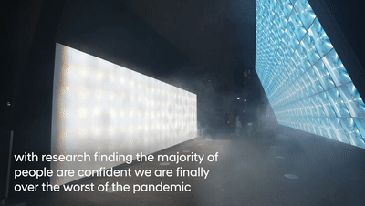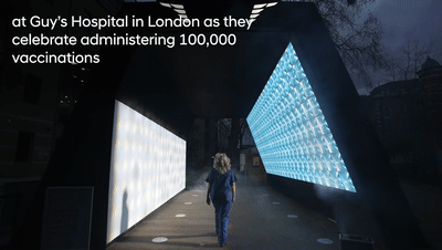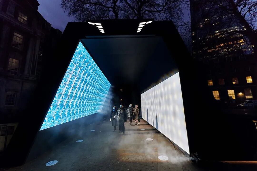 英国Squidsoup工作室创作的沉浸式灯光装置《Tunnel of light》在伦敦盖伊和圣托马斯医院展出,以纪念NHS完成10万新冠疫苗接种的里程碑,预示着市民即将回归正常生活。