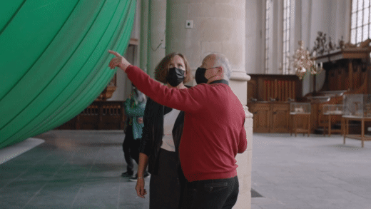 长26米,高、宽近10米的巨型装置完全改变了带有骨架石柱的凸起空间,奇怪而引人注目的绿色形状完美地融入了巨大教堂的中殿。