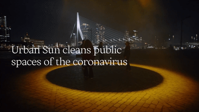 荷兰艺术家Daan Roosegaarde所在的工作室推出了一件利用紫外线对室外空间进行消毒的灯光艺术装置《Urban Sun》,是第一个针对公共空间清除冠状病毒的研究项目。