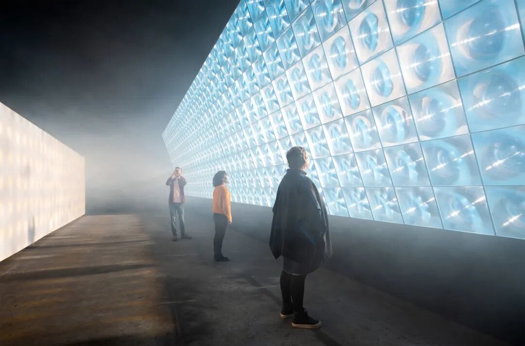 9米长的隧道装置,包含有160个“阳光像素”灯箱,占地25平方米。人们可以在隧道里游走,用手去碰触阳光,也可以直接穿过光线。