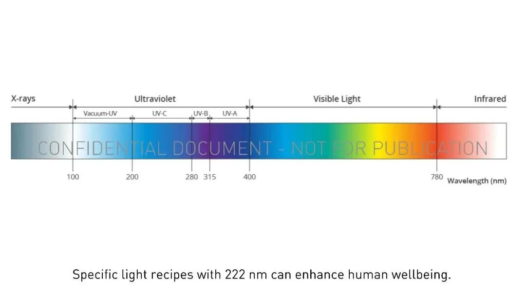 设计灵感来源于哥伦比亚大学和广岛大学于2018年发表的研究成果,波长为222nm的特定紫外线(far-UVC)可以减少多达99.9%的病毒(包括各种冠状病毒和流感病毒)的存在。