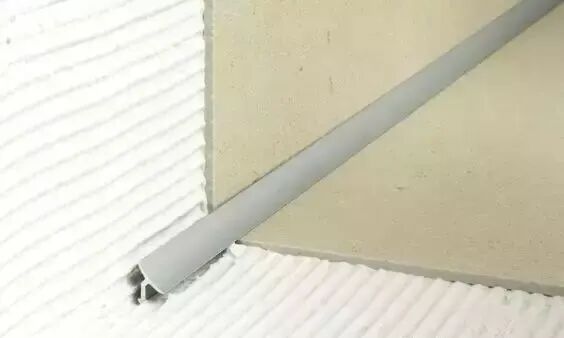 墙与地的阴角收口,通常采用墙压地的形式,不能出现朝天缝。采用金属收口条,会得到更加整洁与美观的效果。如下所示: