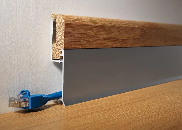 5、铝合金与木踢脚结合,同时隐藏安装螺丝及管线。而且适合安装在砌体墙体上,无需增加附墙石膏板。