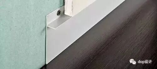 1、 铝合金踢脚线,采用卡扣式安装。适合使用在轻钢龙骨石膏板墙体,可以实现墙体与踢脚线基本平齐的简约风格。